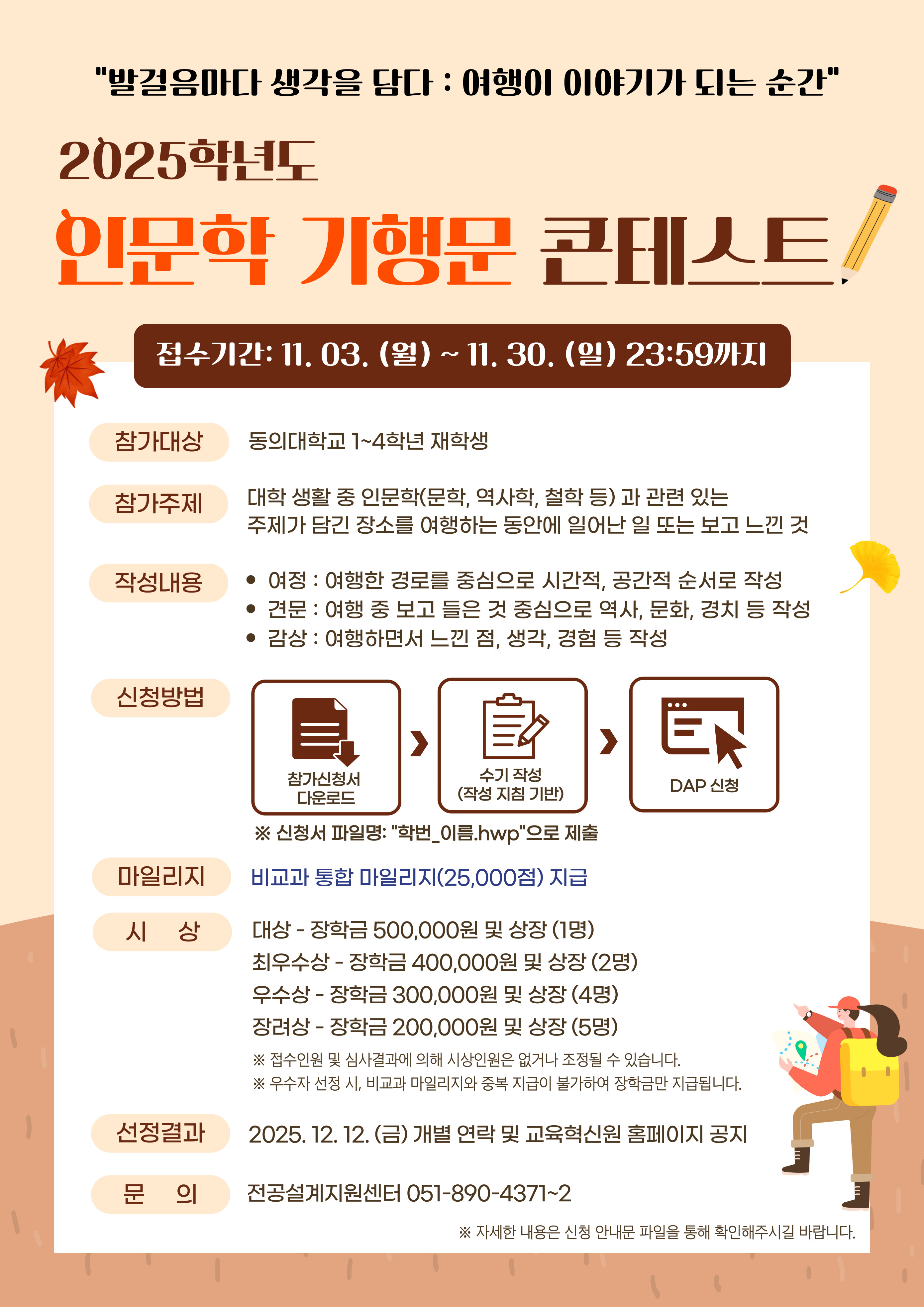 [공지] [대학혁신지원사업]2025학년도 인문학 기행문 콘테스트 개최 안내(~25.11.30)