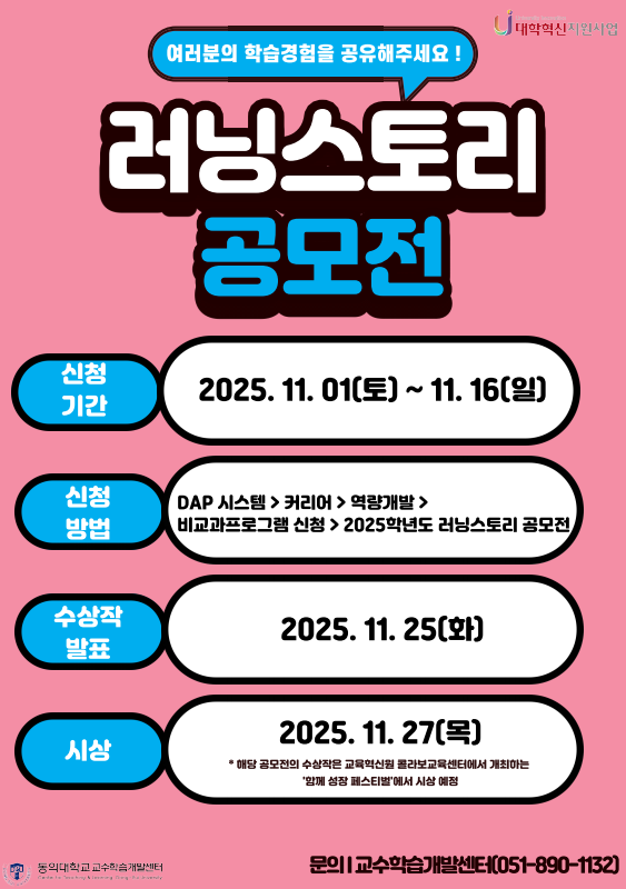 [공지] [대학혁신지원사업] 2025학년도 러닝스토리 공모전 신청 안내(~25.11.16.)
